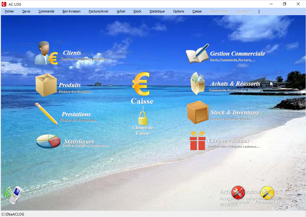 : Conduit vers le menu de Gestion commerciale